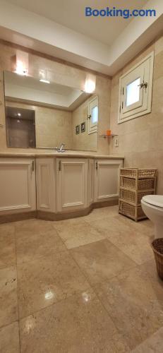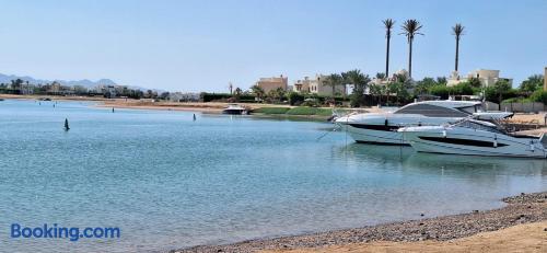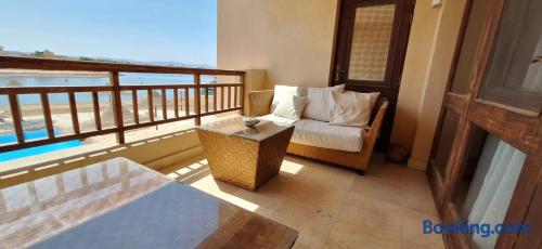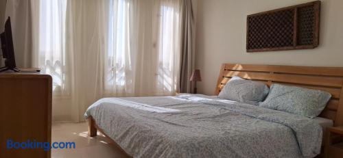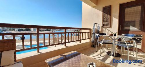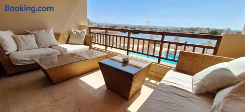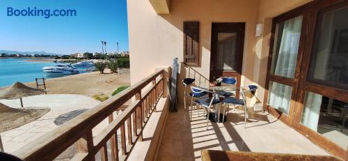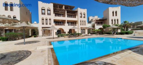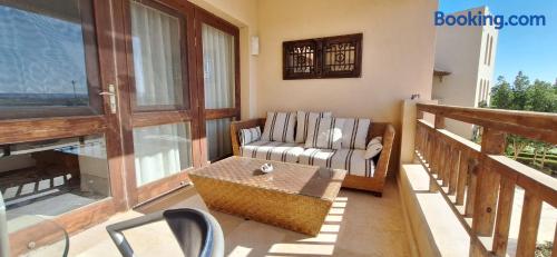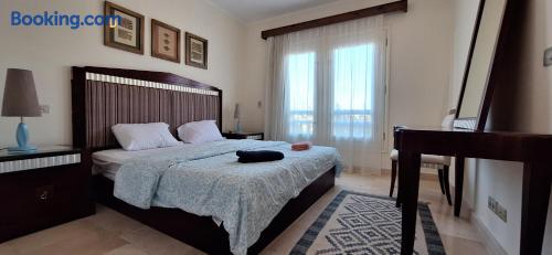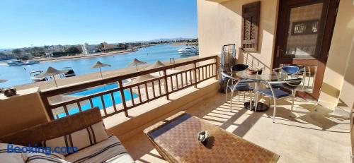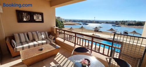 Fanadir Lagoon El Gouna is close to Abu Tig Marina, Fanadir Marina and Kitesurfing Centers in El Gouna and Mangroovy Beach. Guests can relax by the infinity swimming pool or sun terrace, enjoy sea views. Spacious Accommodation: The apartment features two bedrooms, two bathrooms, and a comfortable living room. Amenities include air-conditioning, a fully equipped kitchen, balcony, and free Private Shaded on-site parking.